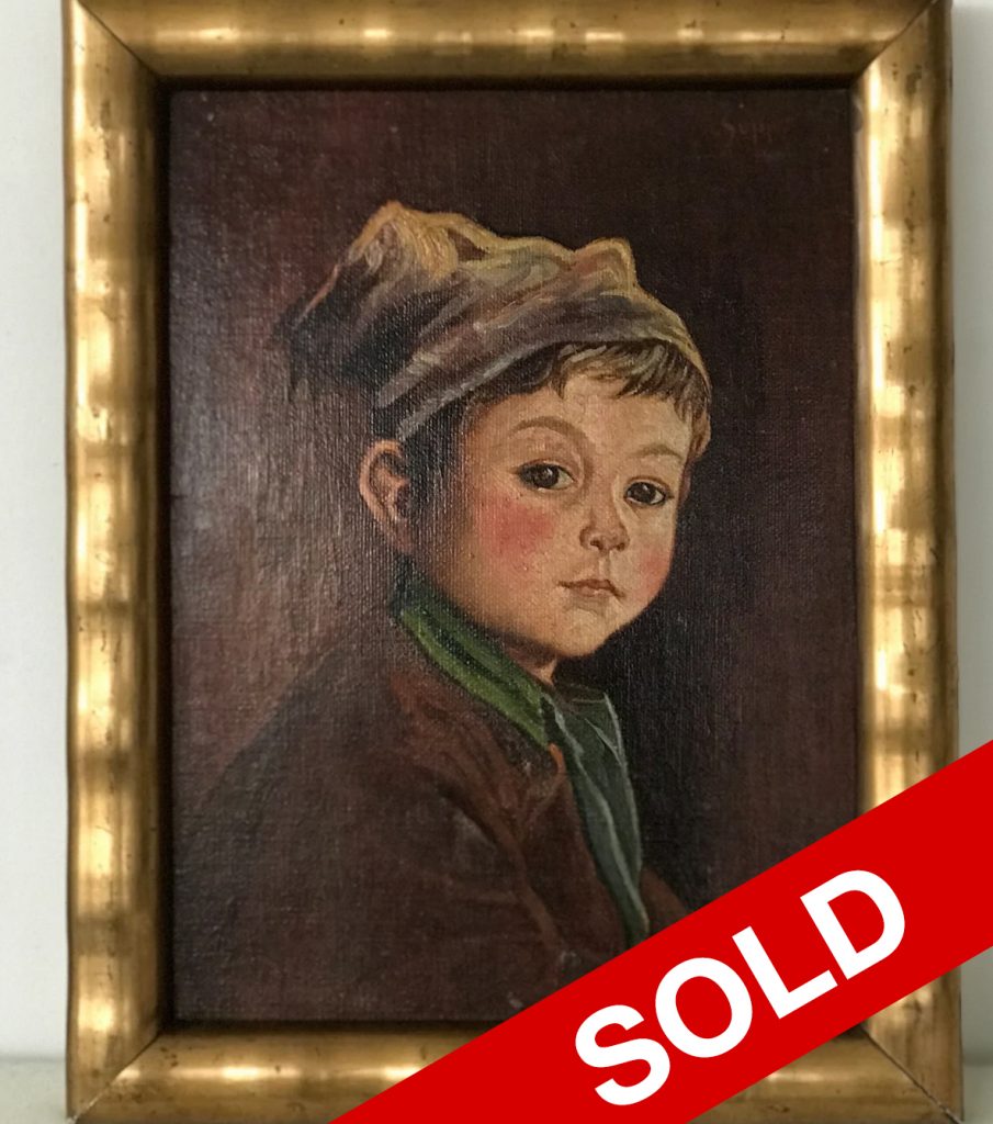 Original antique a boy Portrait Oil Painting on Canvas board, housed in bohemian Gold Frame