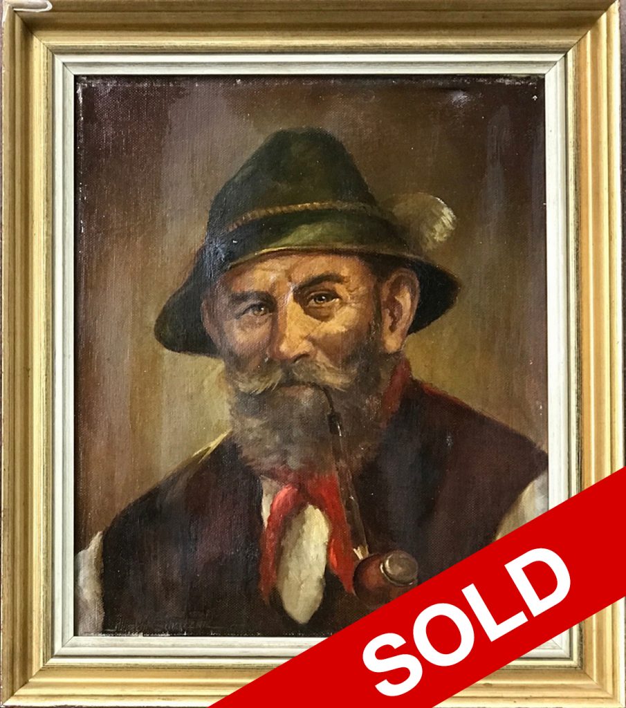 Antique Realistic Portrait Painting, Old man smoking pipe, Original Kind Face Oil Painting, Fine Art, Vintage Man Portrait, signed